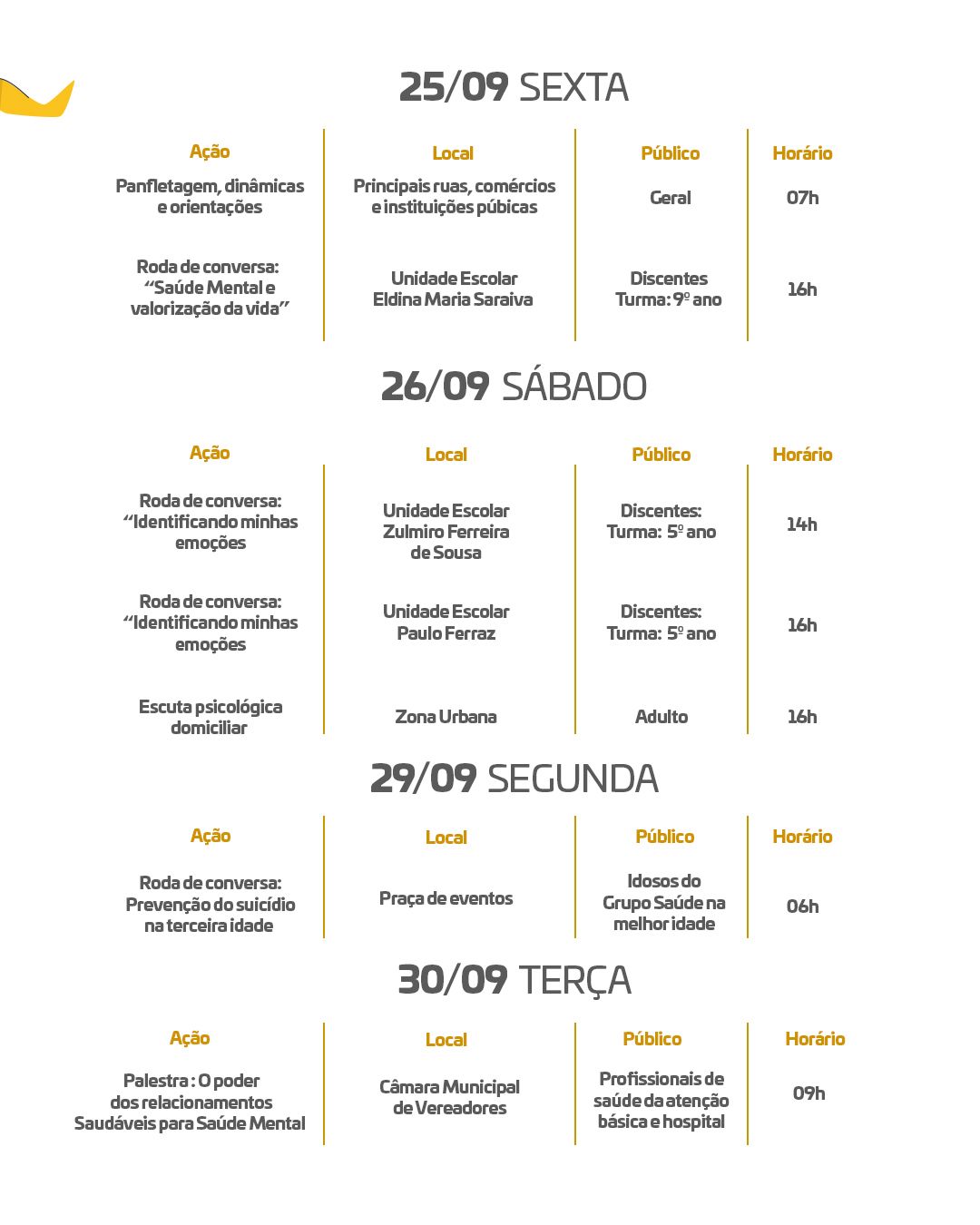 Fique por dentro da Programação do Setembro Amarelo 💛...