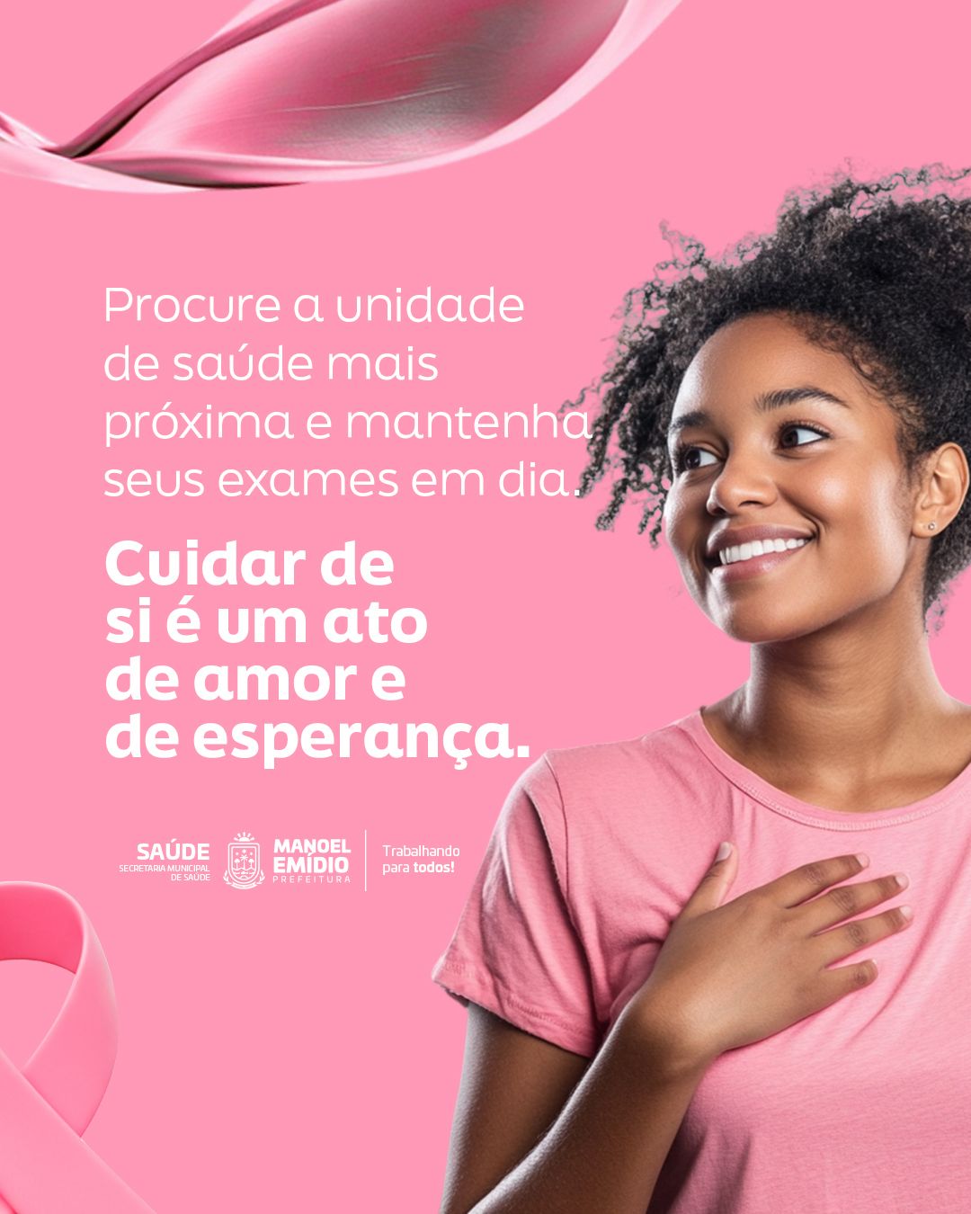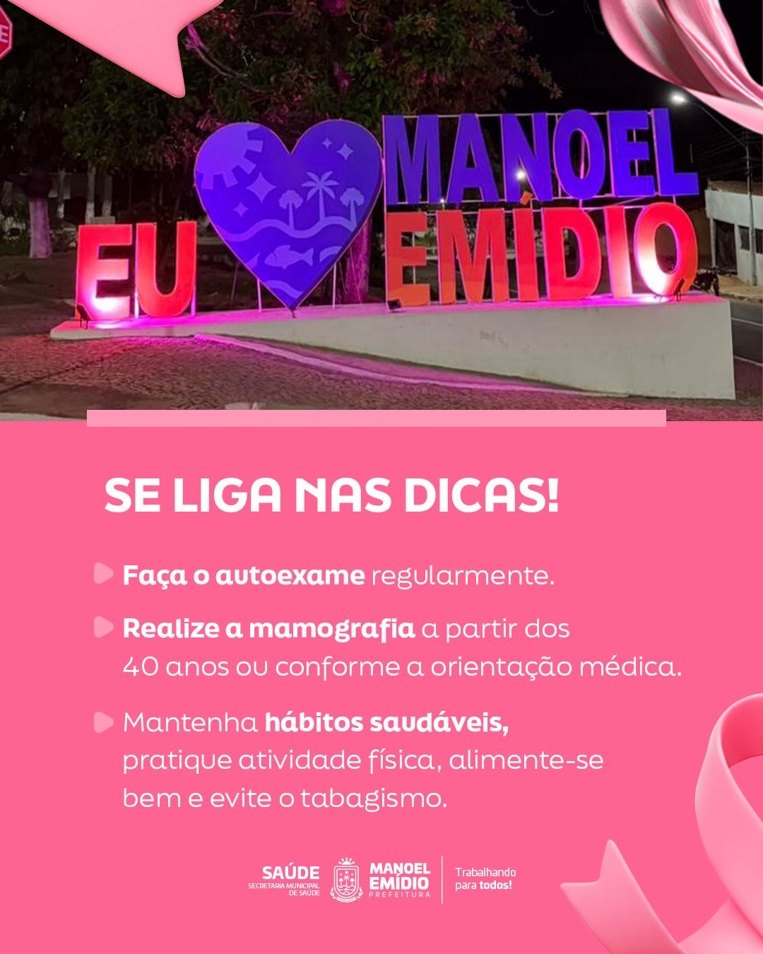 A Secretaria de Saúde de Manoel Emídio lança a programação completa do Outubro Rosa, o mês de conscientização e combate ao câncer de mama e de colo de útero. Sua saúde é prioridade! Preparamos um calendário especial focado na prevenção e no diagnóstico precoce. Confira nossa programação!